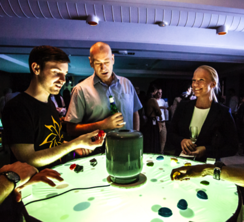 Our idea was to create an enclosed space where visitors can ‘magically transported’ into a serene, natural environment. Here, they can express their emotions through tactile activities and gestures that we described previously, using smart objects. We also added olfactory and audio element to the prototype as a sub-features, making it a multisensory experience.