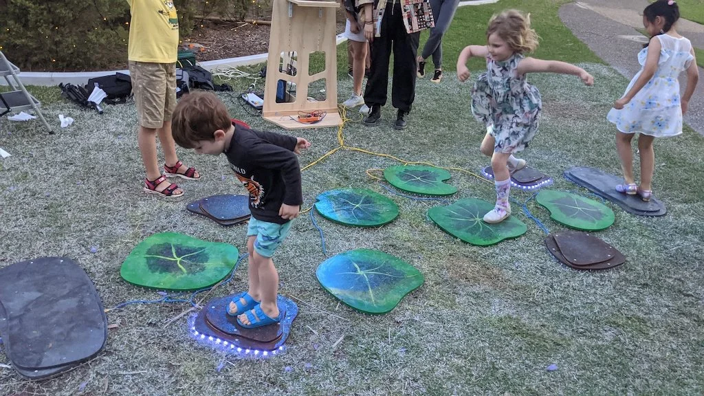 The grass floors are the interaction artefact that controls thunder and lightning.